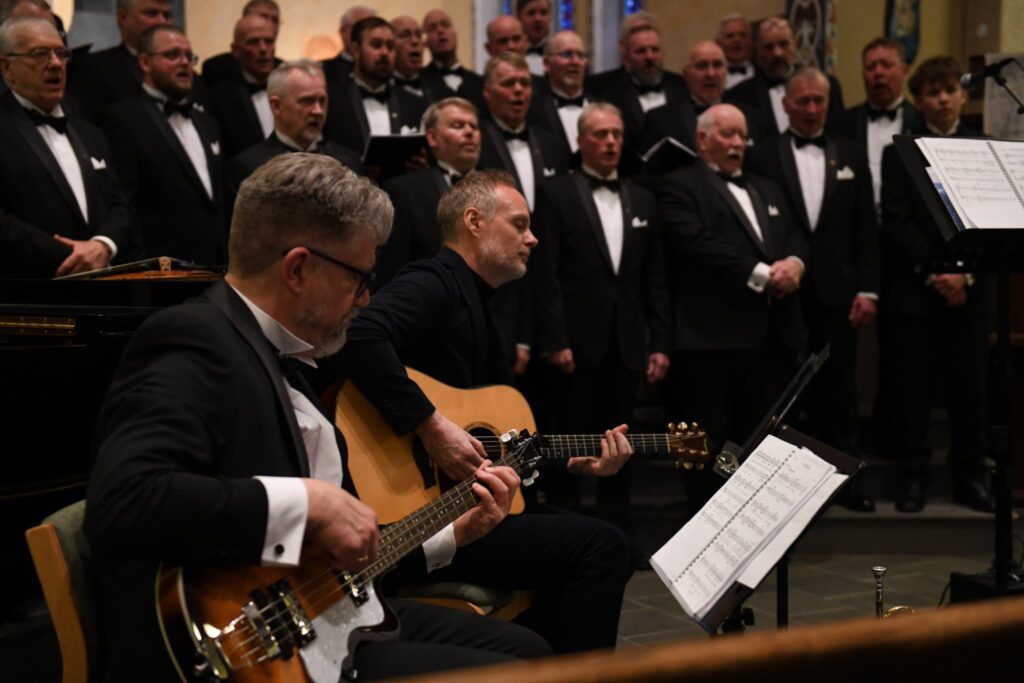 Þátttakendur í tónleikunum með kórnum voru undirleikarinn Sigurður Helgi, Bjarni Atlason, einsöngvari og Magnús Stefánsson, gítar, fiðlu og mandólínleikari. Þá komu nokkrir kórfélagar fram, þeir Karl Hallgrímsson, sem lék á bassa og mandólín, feðgarnir Hjalti Gunnarsson og Bjarni Arnar Hjaltason sem sungu dúett í einu lagi og Bjarni Arnar söng einnig dúett með mági sínum, Hjálmi Hjálmssyni. Atli Guðlaugsson stjórnaði að vanda, og lék á tropet í nokkrum lögum.